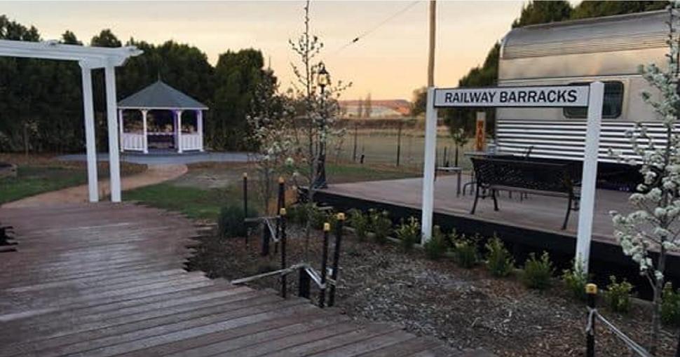 If you're looking for a venue to hire exclusively, with accommodation, our recently renovated historic Railway Barracks has an events hall, fully equipped kitchen, dining area, shared bathrooms and sleeps 44 people. The landscaped garden features a Southern Aurora railway carriage on its own private railway platform, perfect for entertaining and photo opportunities.