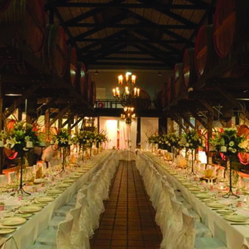 The Great Cask Hall at Hope Estate is one of the most impressive Barrel Rooms and function venue in the country. The Hall, surrounded by 59 enormous wine filled casks, features terracotta flooring and huge vaulted ceilings, creating a grand ambience of baroque splendour.