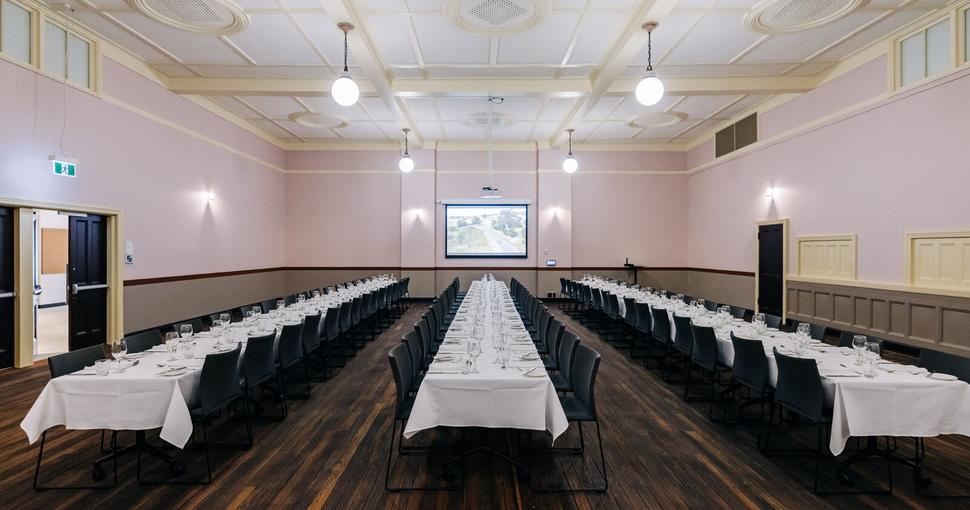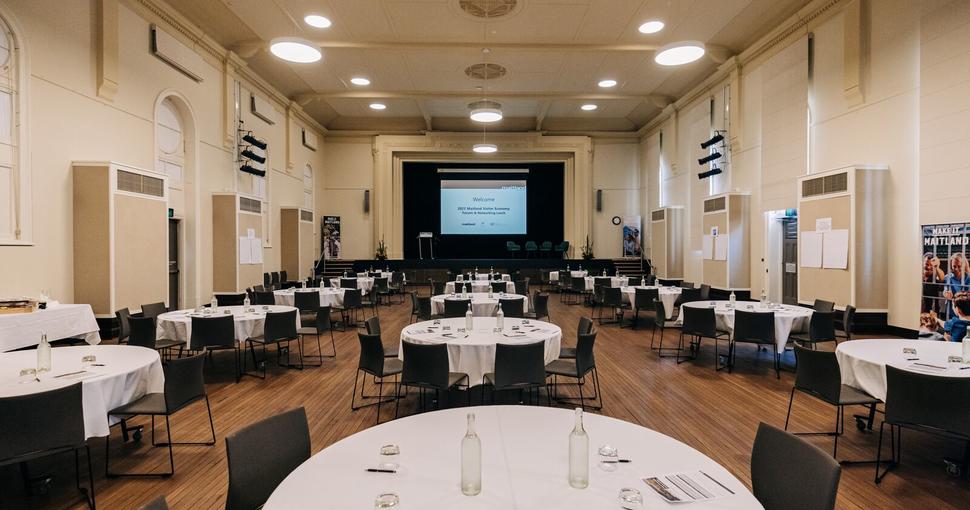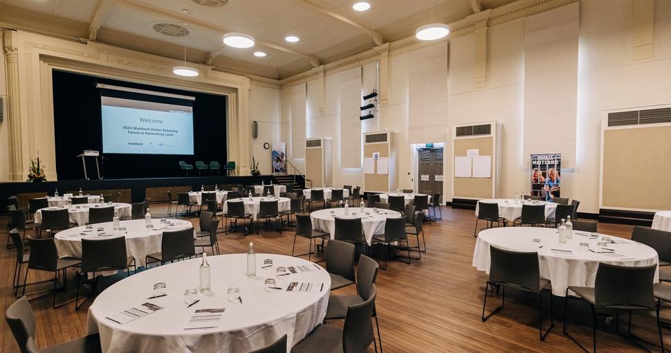 Inviting guests to step back in time while enjoying the comfort of seamlessly woven modern amenities, Maitland Town Hall serves as a memorable location for a conference dinner. The hall also features a state of the art stage with an impressive artist green rooms and audio visual equipment and technology.