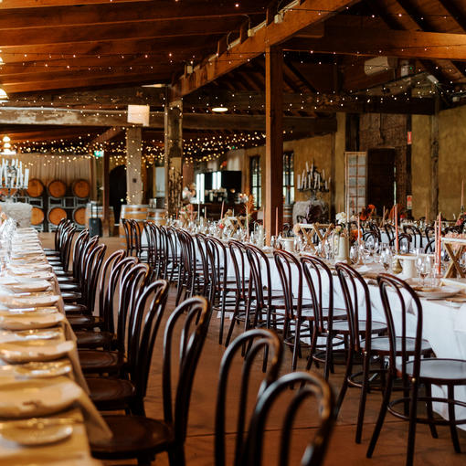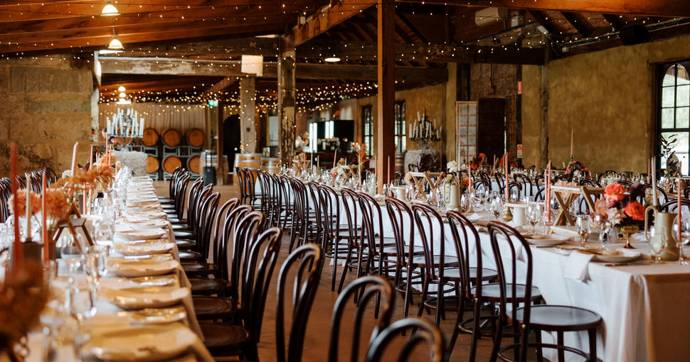 The sandstone chapel onsite is available for private events. The rustic barrel room is just as thoughtful and immaculate, with exposed timber beams, draped fairy lighting, and a large, mood-setting fireplace. Three cosy cottages are also nestled into the Peppers Creek Village. These can comfortably accommodate up to 26 guests, meaning intimate parties don’t have to travel far to relax and unwind after an event.