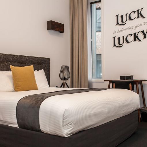 The Lucky loves to entertain! From corporate and Christmas functions to team work shops and business luncheons. Offering both sit down and cocktails packages, The Lucky is available for both lunch and dinner events 7 days a week. Minimum spend requirements apply (available on request). NOTE: The Courtyard is not available for exclusive hire on Saturday evenings. The Drum Bar is not available for exclusive hire on Friday/Saturday evenings. The hotel's central location is in short walking distance of Newcastle's famous beaches and baths, harbour, restaurants and cafes as well as iconic attractions. Each of The Lucky's 30 boutique rooms (constructed in 2014) are unique, featuring modern and tasteful furnishings, ensuite bathrooms, luxury bedding and premium L'Occitane amenities. Corporate rates available.