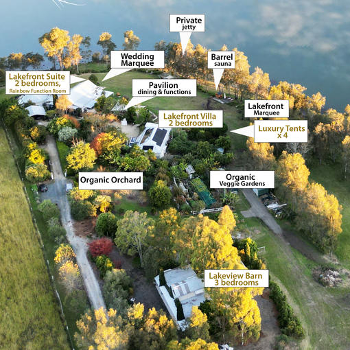 Workshop locations can be set up in our covered outdoor "Pavilion" or in the the "Lakeview Barn" which has a projector and large pull down screen. Break out meetings can be held on the sun deck, pagoda and jetty. A Hamptons style marquee is erected for events with 270 degree lake views.