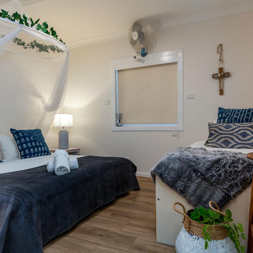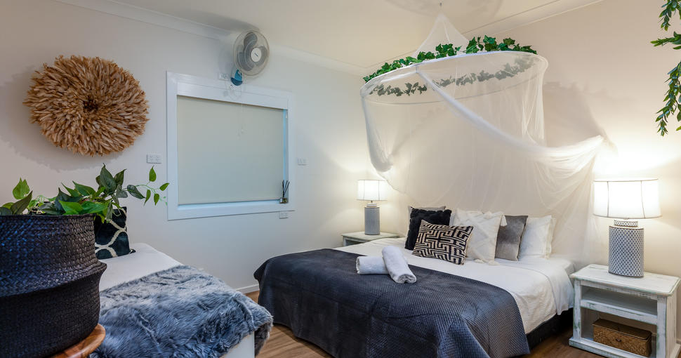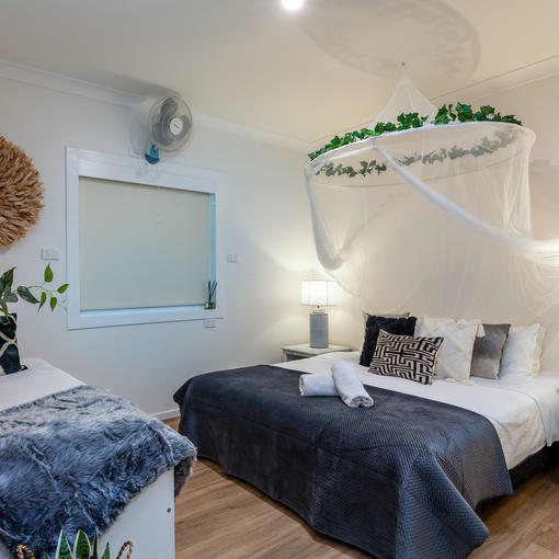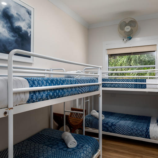 - 5 x 2 bedroom cabins with a queen room, a bunk & single in the second room