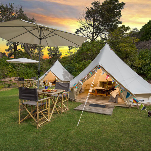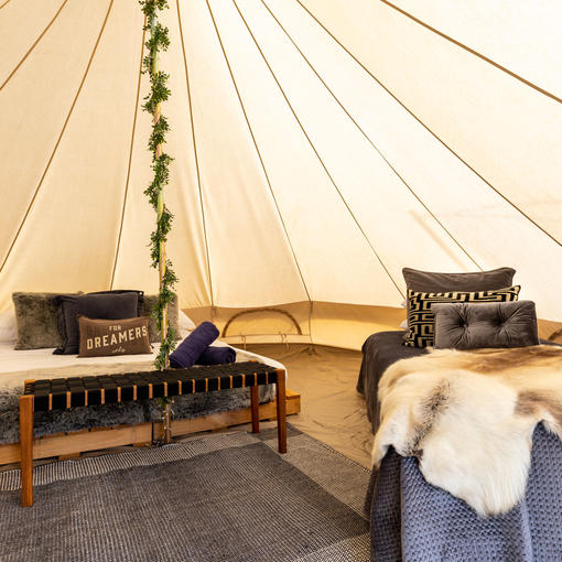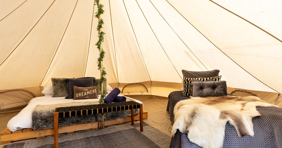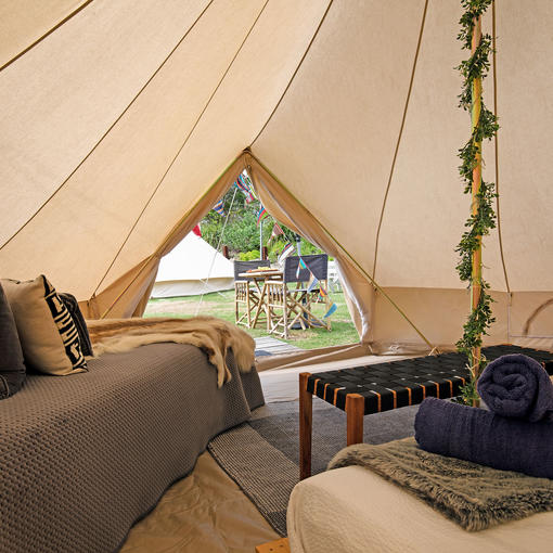 - 8 x Glamping tents with a king bed & a day bed, which can be made into two singles