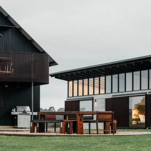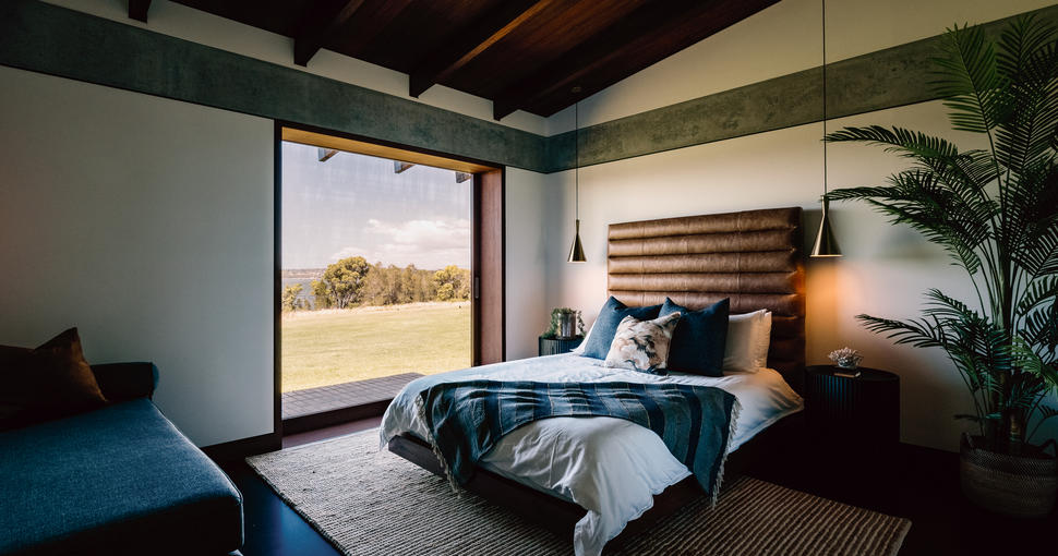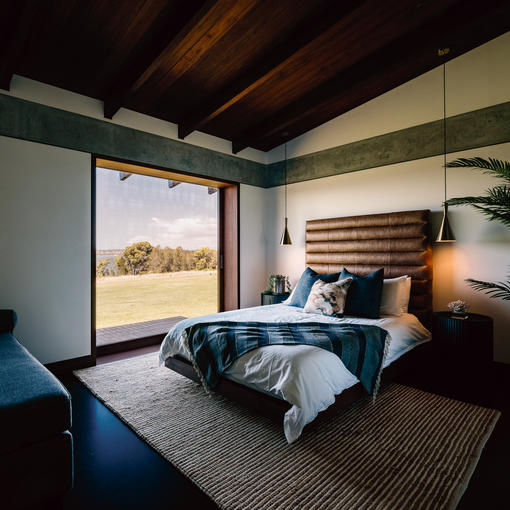 Accomodation consists of two buildings, The Main House and The Barn. The Main house has two large gathering areas, 4 Queen bedrooms and 3 bathrooms. The Barn is a two storey dwelling adjacent to the Main House and has an open plan Loft bedroom with a Queen bed and 2 single beds and a daybed. Beautifully curated spaces with bespoke kitchen and joinery, Australian hardwood, polished concrete floors, marble bathrooms and brass finishes throughout.