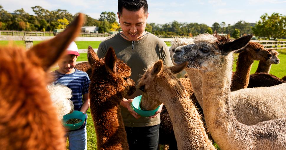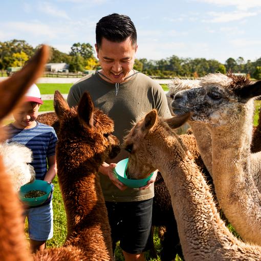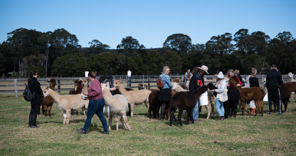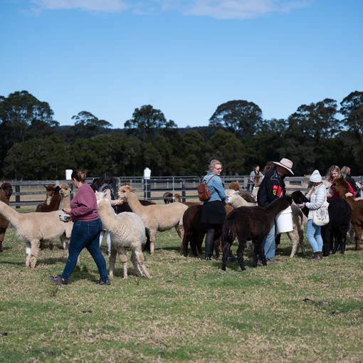 We are located in Jilliby on the Central Coast, one hour north of Sydney and provide visitors with unique farm experiences. We provide you the opportunity to get up close and personal with our herd of over 120 alpacas and 12 llamas. We also have 75 wiltipoll sheep, baby doll sheep, angus cows and guinea fowl roaming freely. We offer the following accessible experiences.