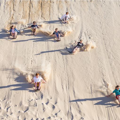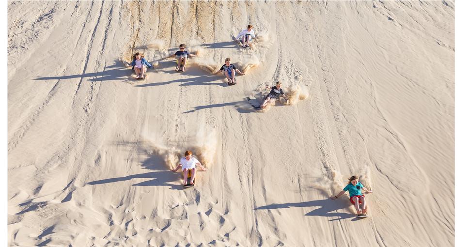 Our speciality has to be sandboarding down the 50 Meter tall sand dunes - so why not challenge your colleagues to a race down the dunes!
