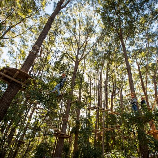 Experience the iconic Australian bush like never before. Get up-close and personal with native Australian wildlife and magnificent Gum trees, as you climb, weave and fly through the tree tops on self-guided high rope courses. Flex your adventurous spirit and test yourself mentally and physically with over 100 elevated obstacles with rope ladders, wobbly bridges, tunnels, cargo-nets and zip lines. TreeTops is the perfect team building option with many different activities available for your team. Whether your aim is to improve communication or trust within the group, to strengthen morale, resolve conflicts, and generate friendships or to simply have a fun time away from the office, choose from our Corporate Packages or we can tailor an event that suits your needs.